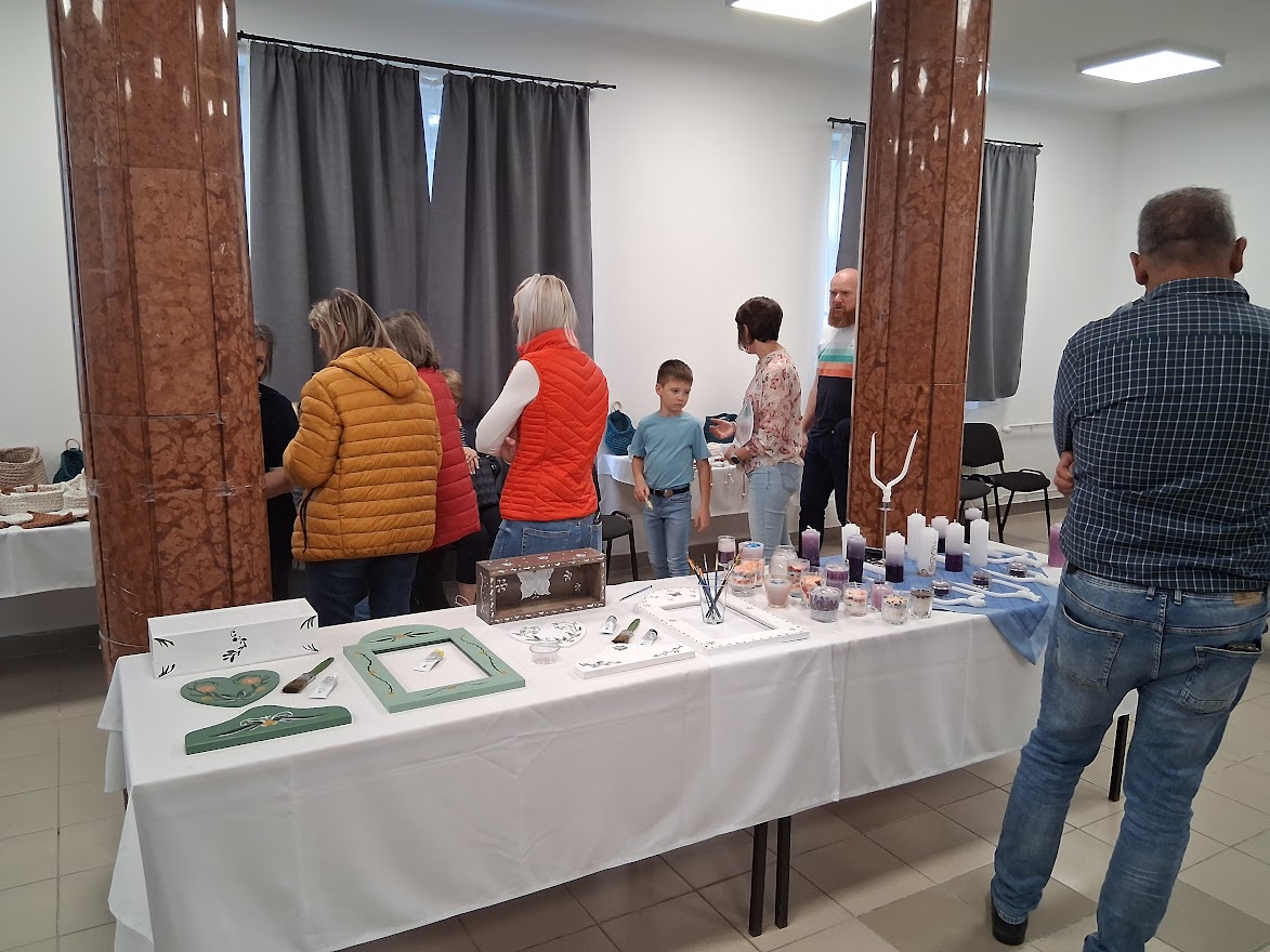 Szakköri tagjaink az év során 20-20 alkalommal dolgoztak a kiállított darabokon. Gyertyaöntés, baba-mama horgolás, zsínórfonallal horgolás, naturkozmetika és bútorfestés szakkörökön 5-5 fő vett rész. Az elkészült gyönyörű darabbokhoz az anyagot a Nemzeti Művelődési Intézet biztosította. A munkákból május 5-én nyílt kiállítás.