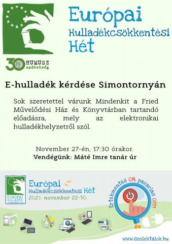 Az Európai hulladék csökkentési héten Körtés Kinga előadásat hallgathattuk meg a Simontornyai hulladékkezeléssel és az elektronikai hulladék gyűjtés témájában. További képek
